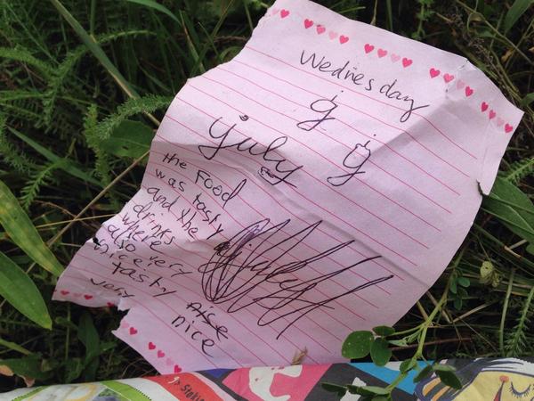 Child's note from MH17 "food was tasty , drinks ...