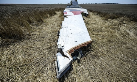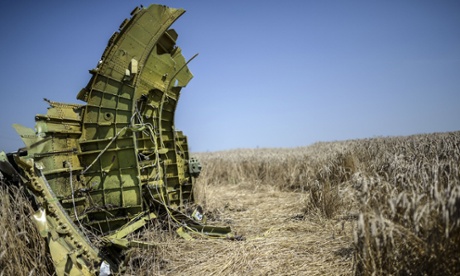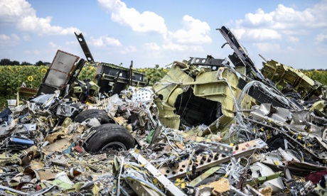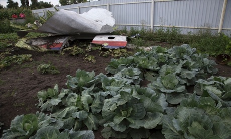 The crash site of MH17 in a field near the village of Grabovo, Ukraine. Photograph: Bulent Kilic/AFP/Getty Images |